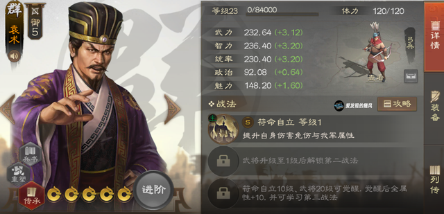 最后是S5的新群雄核心袁术,自动挂机非常好用的一张卡,群体王佐之才,虽然速度比较慢,但很契合群雄队伍的特性。