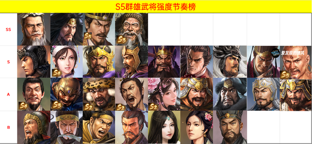 哈喽大家好啊,为了方便大家使用各国的武将,随风做了武将强度节奏榜供大家参考,今天要讲的是S5群雄的武将强度节奏榜。