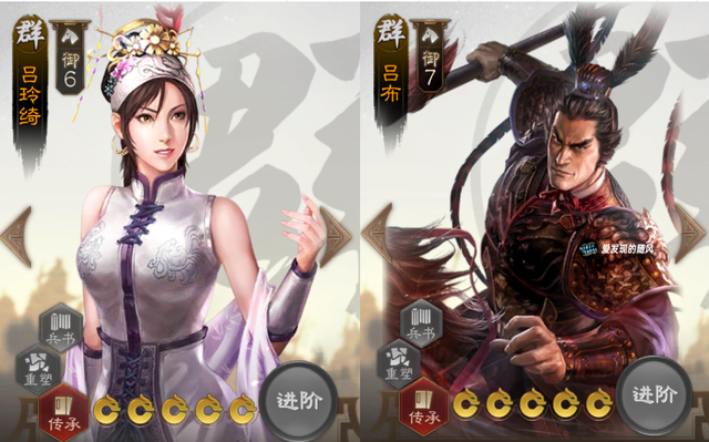 接着是吕妹和吕布两个骑兵输出,吕妹越跑属性越高,在群骑队中既可以当前排也可以输出。吕布则是越杀人自己输出越高,也越肉,也是群骑队中不可或缺的前排和输出。