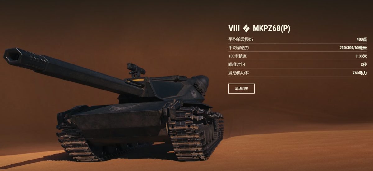 VIII级MKPZ.Pr.68(P)是本次联动中的主题坦克,主炮威力巨大,可轻松穿透敌方装甲。其瞄准时间仅为2秒,高效率的进攻能力也可以在实战中发动更猛烈的攻击,让敌人还未作出任何反应即被摧毁。