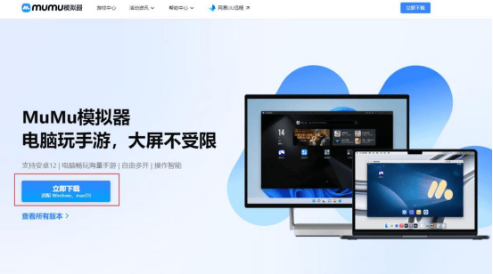 2、点击官网首页“立即下载”按钮进行下载(下载适配Window以及macOS系统,点击可以直接下载对应版本的模拟器);