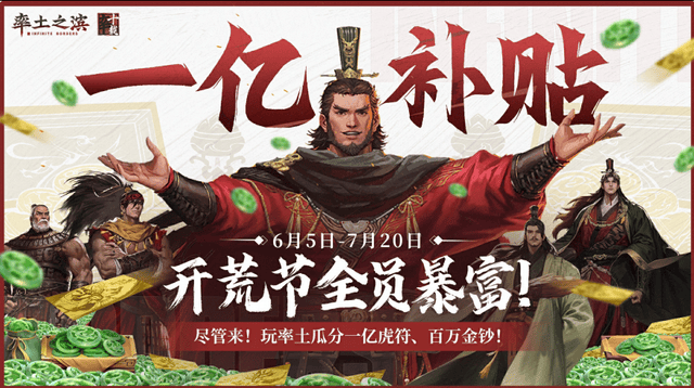 颤抖吧!友商们。如此福利巨浪,你又该如何应对?不管是萌新还是策略游戏高手,你都可以在率土1亿开荒节中拿补贴拿得手软,快来加入《率土之滨》一起开荒攻城吧!