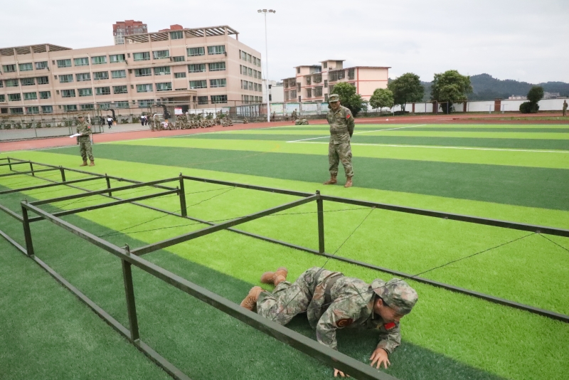 在训练场上,迷彩身影在障碍间敏捷穿梭,低姿匍匐、侧身滚进、战术搜索……一招一式虎虎生风。“卧倒!前进!匍匐通过!”随着指挥员一声令下,参训官兵迅速反应,立即低姿、侧姿、高姿匍匐穿越铁丝网,快速完成战术动作。“加油!加油!”在考核场上,采取“逐人过、逐项考”的方式,考核民兵们随着低桩网高度变化,不断变换前进姿势,增强战术意识。