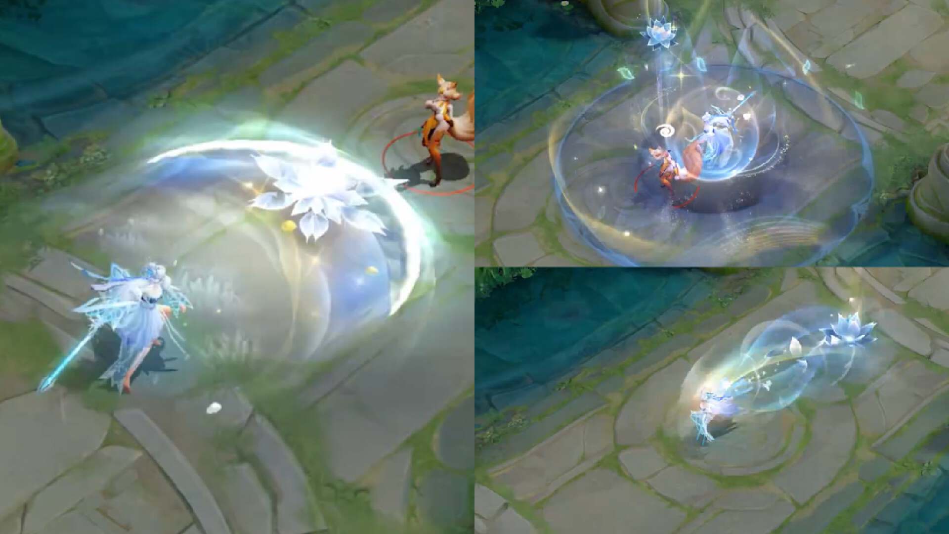 皮肤的特效质量也不低,如下图所示,一技能的特效是一片白色的剑光,中间还有雪莲花。被动标记也是一朵雪莲,二技能则是一朵硕大的雪莲花,三技能也会在身后留下一朵雪莲。