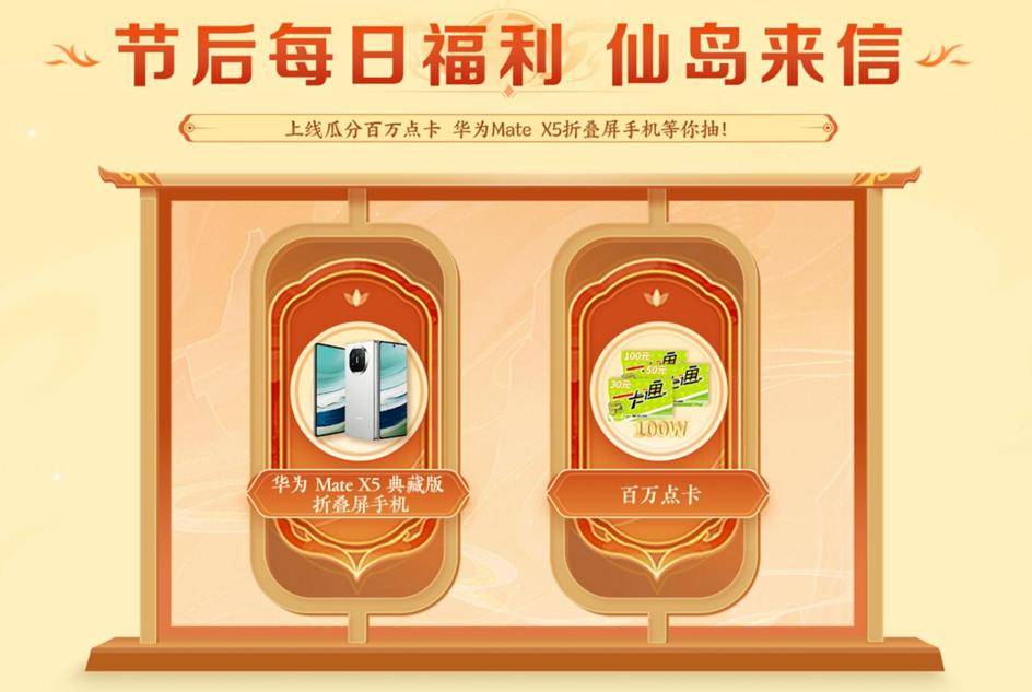 百万点卡、华为 Mate X5折叠屏手机等重磅大奖等你瓜分!