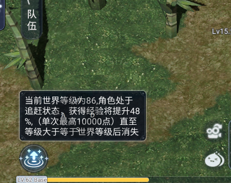 1.当前世界等级为XX时,角色处于追赶状态,获得经验将提升48%(单次最高10000点)直至等级大于等于世界等级后消失。