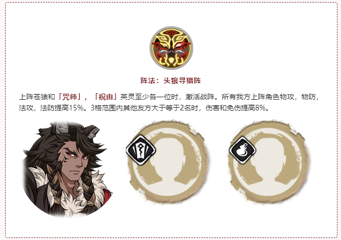 最后苍狼的阵型也比较容易触发,这里又有最高8%的免伤,所以如果用苍狼阵型的话,苍狼最高可以享受到63%的物理免伤和48%的法术免伤。再来一个20%的双防提升效果,试问如此之硬的光T,到底要怎么样的幽系角色才能打得动?就这么个功能覆盖+防御减伤强度,这只小狼狼应该已经提前预定了一个15人盒子吧,并且在PVE中维一也感觉他能替代小古的部分作用,甚至夸张点说要来个完全替代也不无可能,所以苍狼都给到这般设计幅度了,明天的白鹿又到底会如何呢?