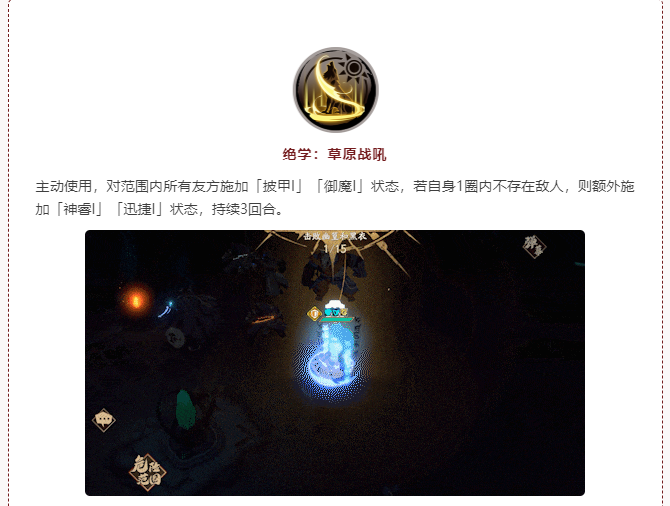 接着这个【战吼】技能所能最多提供的长达3回合的4个buff......不管是PVP还是PVE都能有所助益,主要是这个持续时间太长了。