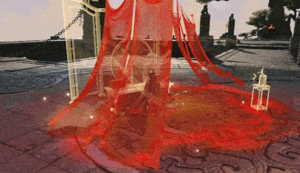 这两套时装还自带单人动作,【司玄镇天】的【铸禁幡】引天雷、借禁幡,强大实力无需多言;【曦凤嘉煌】的【长镜辞】对镜梳妆,红绸轻掩下,是思君佳人的孤寂身影。