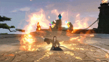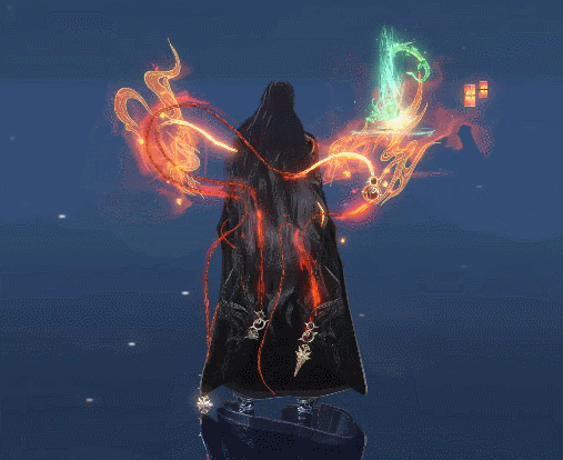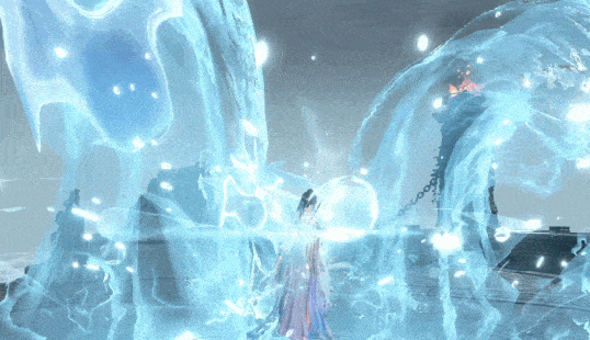 时装自带单人动作【绘卷凌虚】/【流婉翩鸿】,以《仙逆》动画中的标志性场面为灵感而成。【绘卷凌虚】中生死意境画轴现,魔域一战也不足为惧;【流婉翩鸿】中,借水之力成阵法,以水化冰、杀伐果断。