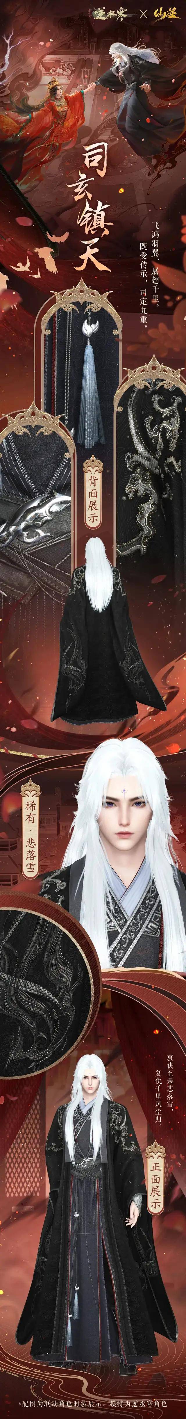 联动时装【司玄镇天】气场强大,银丝绣成的暗纹使通体墨色的长衫并不显沉闷,稳重严肃,给人以压迫感,冷脸之下是对心上人难以抑制的情愫。