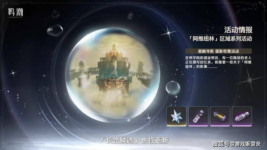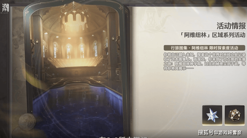 新地图阿维纽林神学院区域探索系列活动——留影收集&两个探索度活动,一个是整个地图的探索度,一个是区域探索度,都有星声可以拿