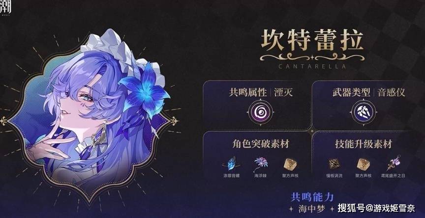 千呼万唤始出来,我们翡萨烈大姐姐家主坎特蕾拉将在版本更新后进入卡池(四星角色丹瑾、渊武、马小芳),在上过版本与翡萨烈的交手中似乎他们是站在教会方的坏人,实际上是这样嘛?和家主大人同行,她会带领阿漂揭开一切背后的故事,湮灭属性音感仪共鸣者,角色突破材料如下,大伙可以提前刷起来了,有人说坎特蕾拉毒杀前任家主才坐上位置,是恐怖的毒水母,这么坏的家主看来得让我们阿漂舍己为人为民除害啊(流口水)