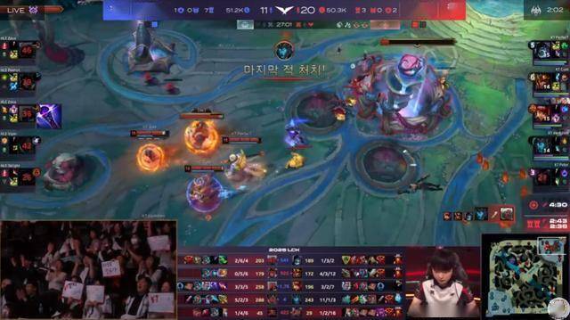 其实这场比赛前期最大差距就是上单和中单,Perfect和BDD对位发育远远不如Zeus和Zeka。但是Zeus送了太多次了,到了后期每次自己狼母大招进去就白给,今天这支HLE打得确实不怎么样,上野辅可以说是被KT完爆了。KT最近的连胜,也是让DK处境变得很尴尬,因为他们极有可能被取代踢出前五。