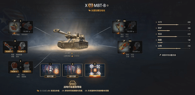 不过,MBT-B也有弱点。由于装填时间相对较长,在火力倾泻完毕后会有一段较长的“真空期”。加之其自身血量和整体坦度并不突出,一旦这时候被敌方抓住机会,很容易陷入险境。因此,需要玩家们“找机会”再果断出手,切忌盲目硬冲。若能熟练掌握其输出节奏,利用机动性规避伤害,MBT-B便能化身为真正的战场杀神!