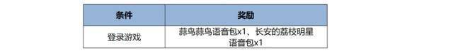 6月5日至6月11日,为期1周的时间,只需要登录游戏1天,即可领取“蒜鸟蒜鸟”的限定语音包。
