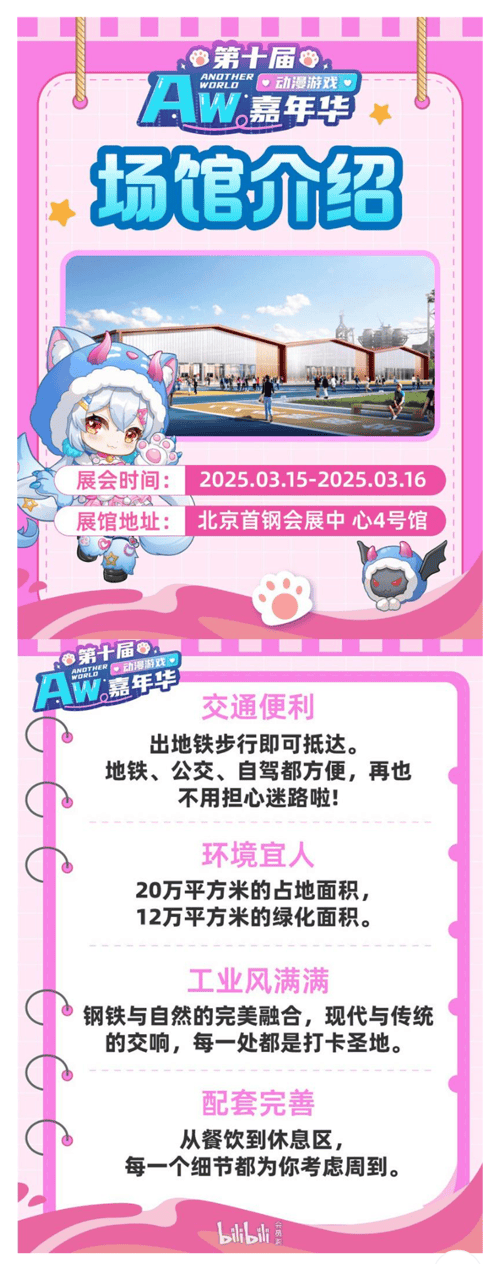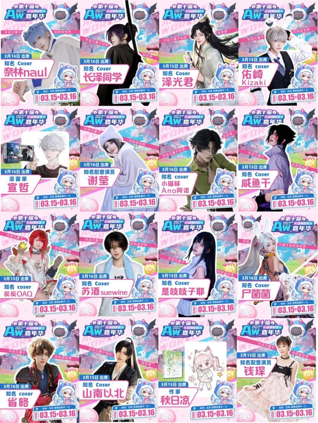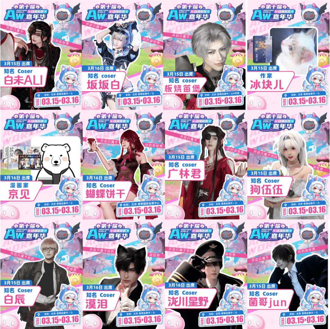 2025年3月15日-16日,第十届Aw动漫游戏嘉年华将在首钢国际会展中心4号馆举办,汇聚国内知名配音演员、漫画家、Coser,掀起一场动漫游戏爱好者的狂欢。