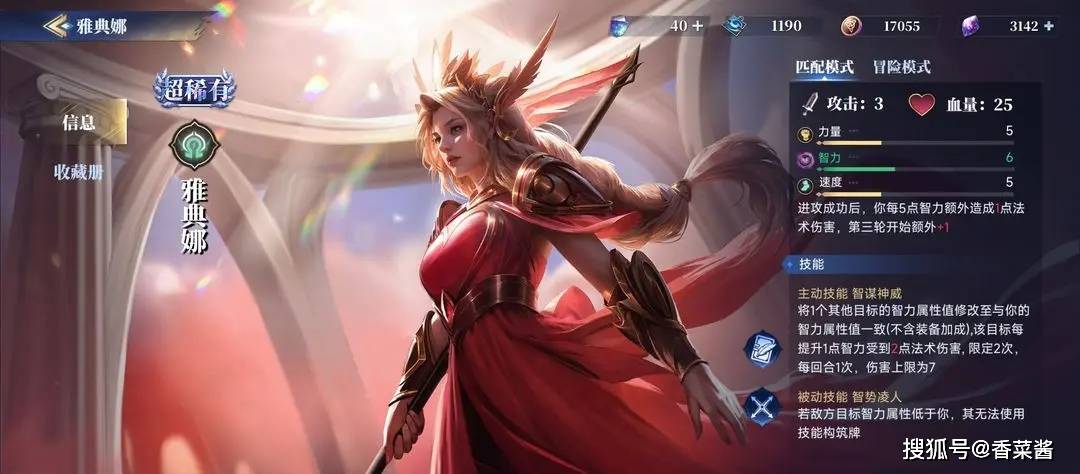 雅典娜,因为玩智力角色的比较少,条件还是比较容易达成的。