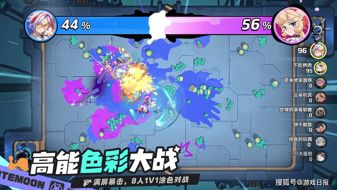 演示视频还展示了《代号:月相计划》的对战过程:每位角色可携带六件武器装备,通过释放武器装备的技能击败场地中的怪物获得涂色,以涂色面积大小决定最终的胜负。对战画面中会实时显示己方和对方的涂色占比,让策略对抗数值得以具象化。