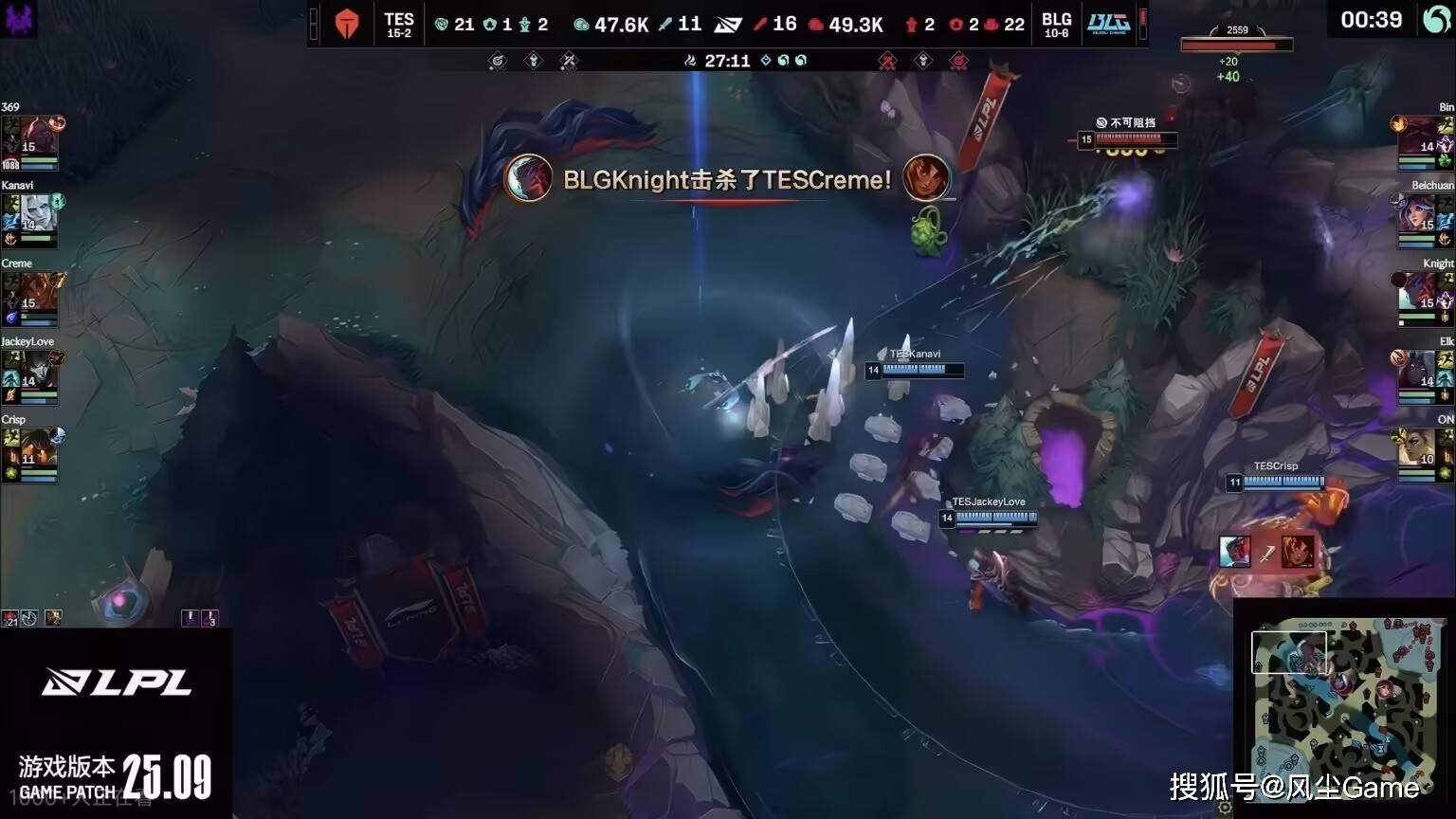 同一天的另一场比赛,是联赛大王TES,大战全华班BLG,这场比赛对滔搏来说,输赢影响都不大,因为第一已经拿下了,但对正在竞争,最后一个季后赛,直通名额的IG和BLG来说,这场比赛就很关键了,BLG赢了,IG跌入骑士之路,BLG要是输了,IG和BLG就得在收官战进行竞争。
