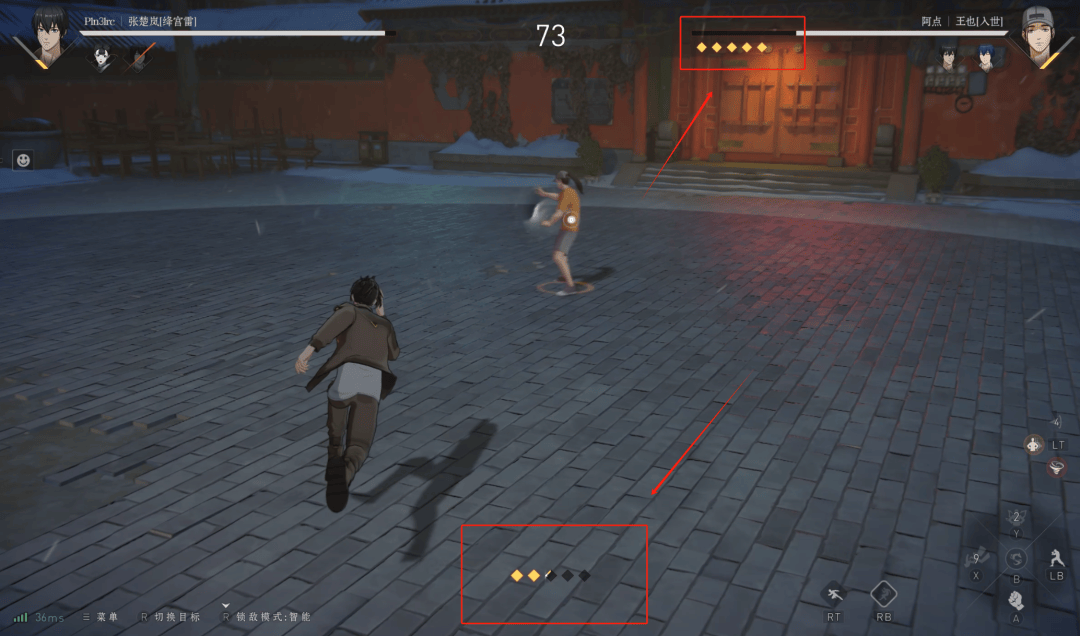 玩家闪避,受身,干很多事,都要用这个体力点。闪避要一点,受身要消耗三点。这就让对战,又加了一层 “ 资源 ” 博弈。