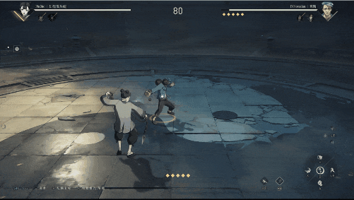 比如如果你把 “ 防御反击 ” 和 “ 攻击取消 ” ( 主动打断自己的连招 )结合,就能打出这样的操作——你防住对手的招式,触发反击,再依靠防反,瞬移逼近对手,这一瞬间,你立刻取消,化防反为普攻,从而直接破除对方的防御。