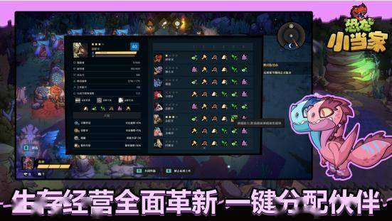 “迪诺兽”具备多种不同的天赋特性,让它们可以适配不同的工作类型,游戏中玩家需要通过肉鸽关卡战斗来获得“迪诺兽”的蛋,并将它们带回家园中孵化培养。DEMO版本中开放了8种“迪诺兽”的培养,在正式版中会有超过40种“迪诺兽”。