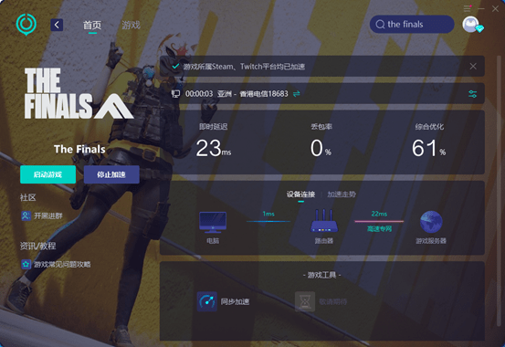 然后、加-速完成后即可获得一个稳定的网络连接,就能启动畅玩Thefinals 最终决战