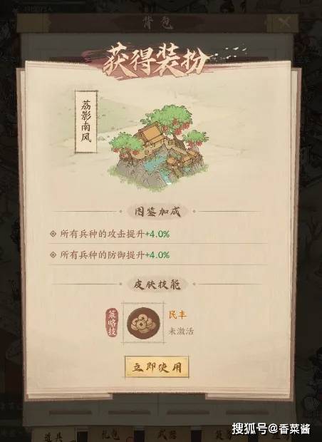 获取该道具后,可手动激活九州县邑的初阶[荔影南风]装扮。获得装扮后,可前往书阁-图鉴激活: