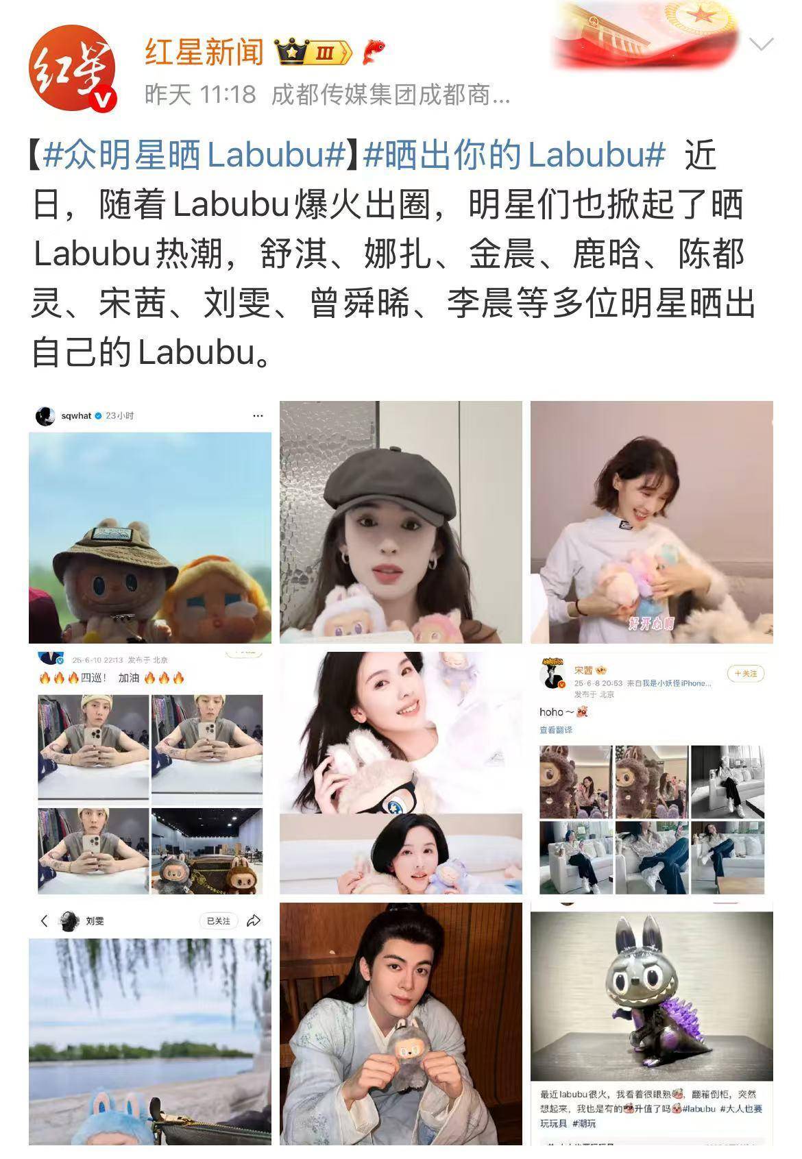这一套模板,在中国照样奏效。#刘诗诗用心在养LABUBU#、#李晨晒哥斯拉LABUBU#频上热搜……时尚博主们也唯恐落后,香奈儿、LV包包、爱马仕轮番与LABUBU混搭出镜——到此时,社交媒体上的一只LABUBU已经超越了玩偶本身,而是一种代表着有购买力、时尚的符号。