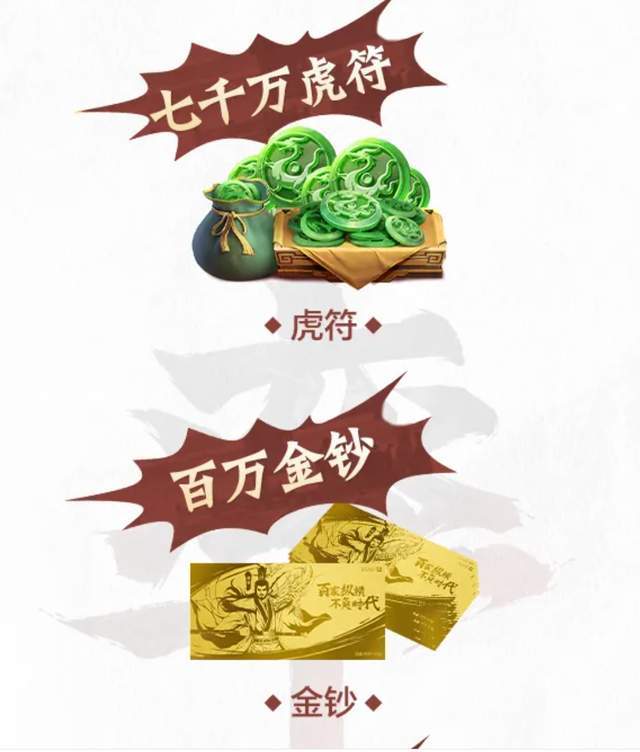 7000万虎符,加上百万金钞和数千份实物奖励的第一波福利,花在了玩家开荒和打城的日常活动上,不虚伪不做作,只要在游戏里体验过程,参加团队的活动,就能收获一大波福利,光是这第一波,很多游戏厂商都不舍的拿出来。