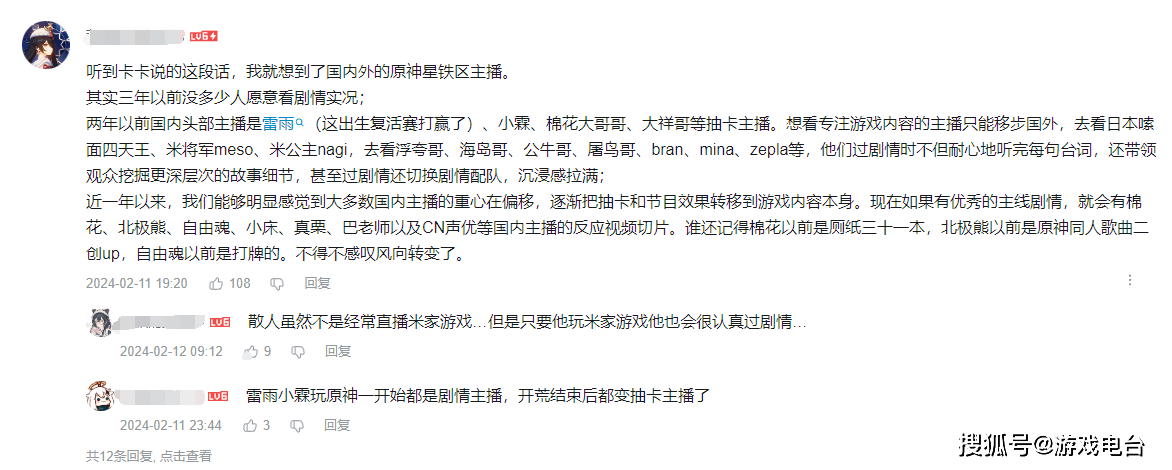 比如最近“卡特亚”就在直播玩星铁的时候感慨,米哈游真的改变了如今二游玩家的习惯。以前这些主播为了能第一时间发布游戏信息,都是急吼吼的去玩儿游戏。