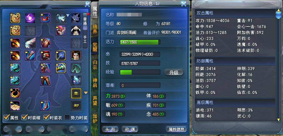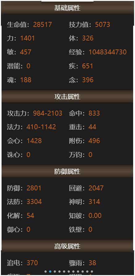 第一点就是等级足够,人物等级是天魂三天伍,对于不需要等级要求的职业来说已经足够了;启慧42级天灵560,也能够满足6069副本的需求;灵兽已经达到神启,孩子也是天魂贰天陆,按部就班提升就行。