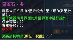 太初武器胚子选择大攻高的三星胚子,我是先用灵石初打造出四条,然后再用必出的灵石去砸出我需要的属性条目(初级属性力和附伤、中级属性会心和高级属性诛心)。太初武器星级提升可以使用20人本不周天倾出的材料换取,最高能提升到三星。