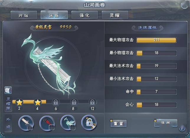 这号刚入手的时候画卷是一点都没有培养,所以我是从头开始整的。每周师徒商店购买5个五彩石去洗炼,我现在最大物理攻击已经洗满了,强化等级11级总增幅达到了55%,这一部分还有提升空间。