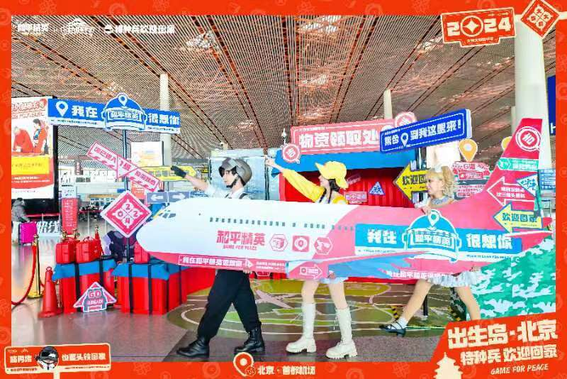 爆火全国的“我在xxx很想你”路牌被和平精英搬进了游戏里,“我在P城很想你”、“想你风还是吹到了S城“等路牌在海岛地图里卷起了一阵打卡风潮,甚至和平精英还在把这块路牌搬到了春节爆火的哈尔滨大世界、亚洲最大火车站广州白云站、全国八大区域枢纽重庆江北机场和北京首都国际机场等线下场景,结合春运回家和旅游热点,欢迎所有特种兵回家。