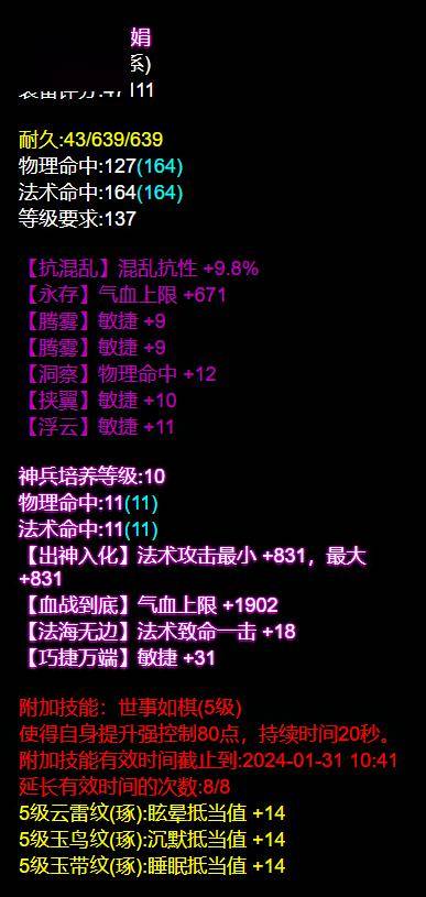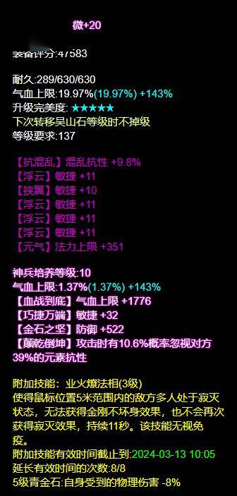 同时防具上走高敏法躲路线,又有命中又有躲避,配合自身控制技,能抗能打,续航性强,是非常不错的一套选择。
