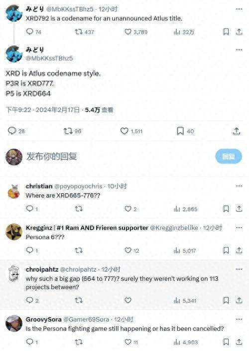 XRD是阿特拉斯(游戏)代号样式,其中《P3R》是XRD777,《P5》是XRD664。所以根据以往Atus作品开发代号判断,这大概率是一款《真女神转生》或《女神异闻录》系列作品。