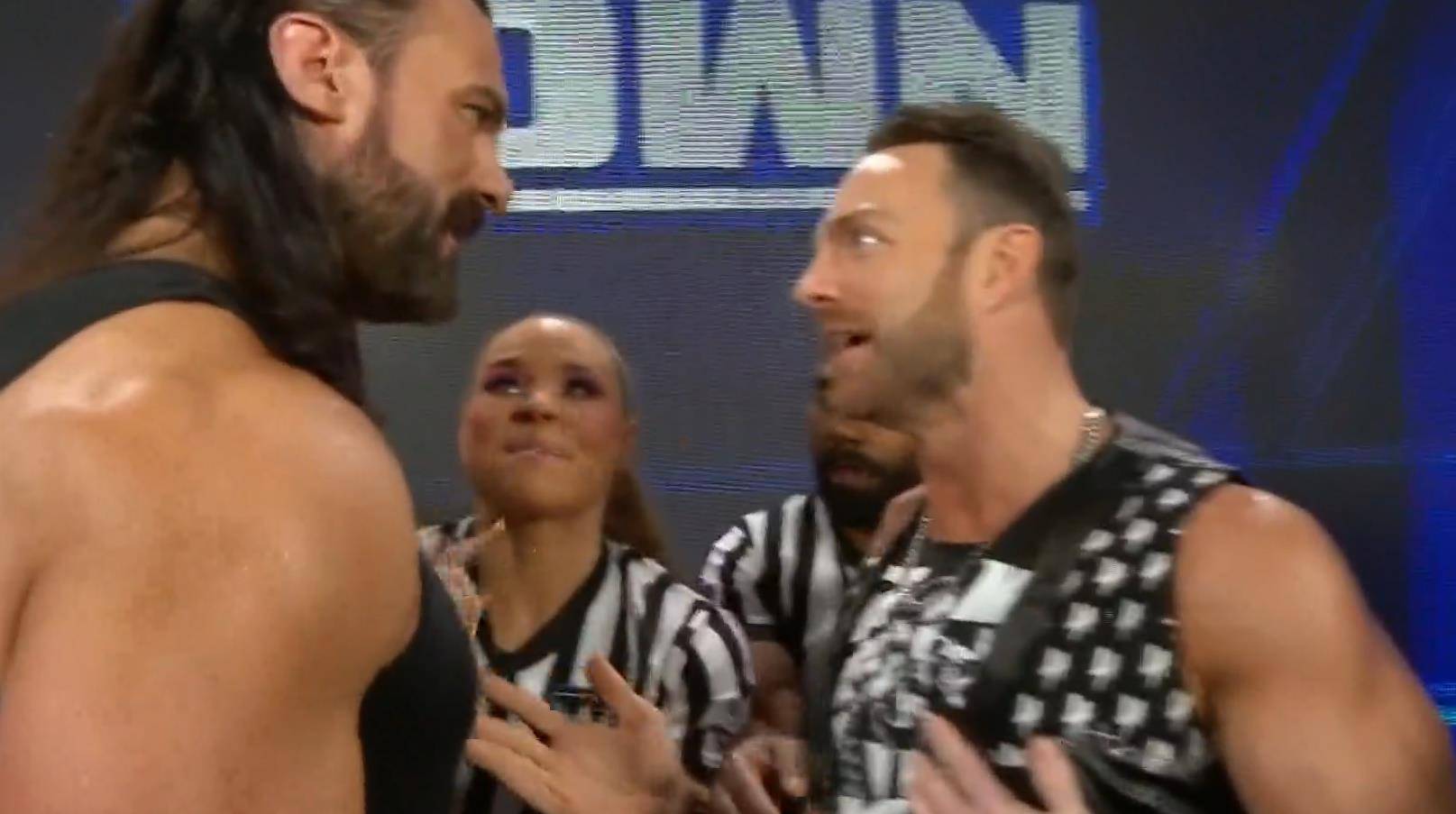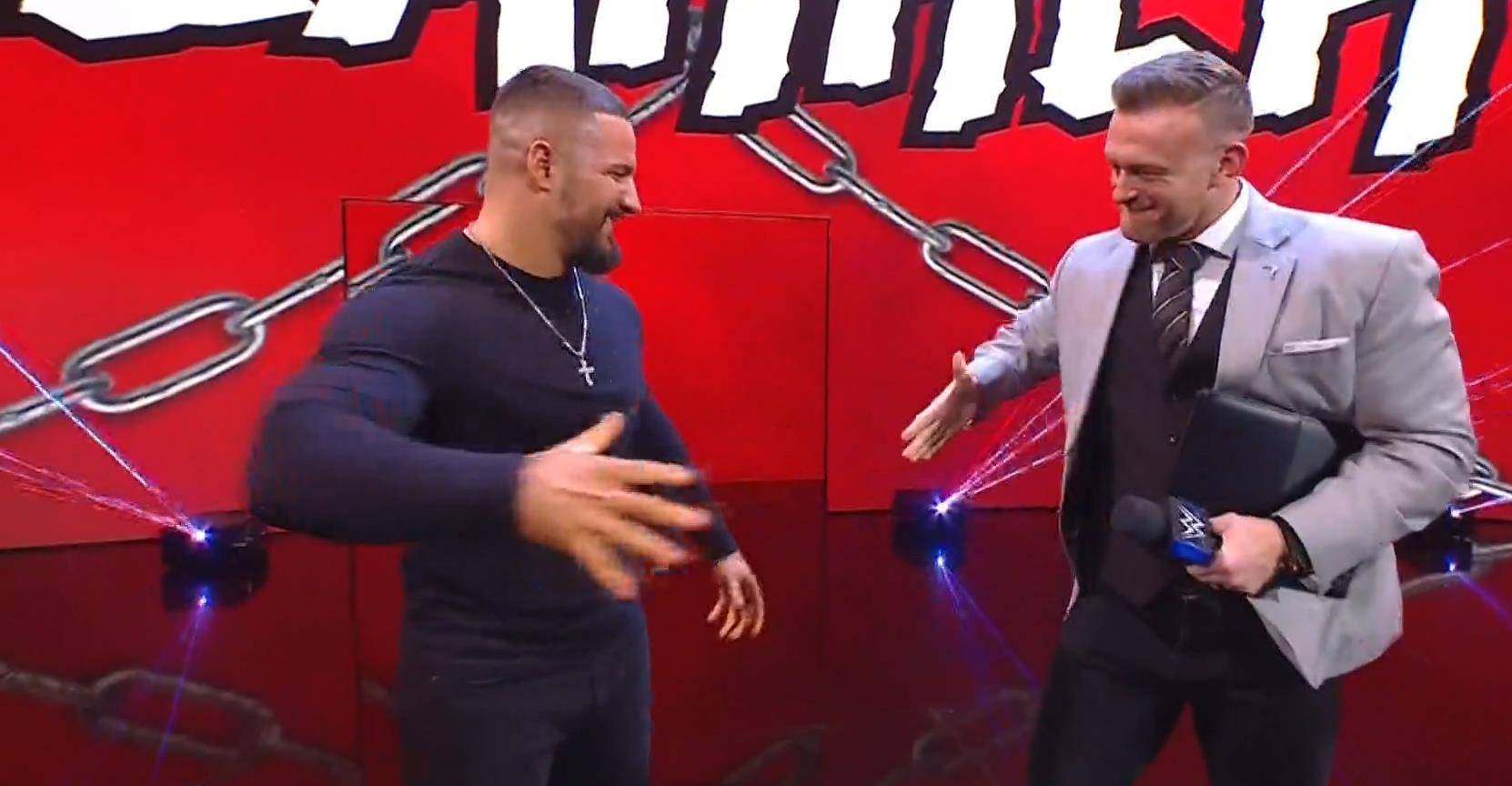 德鲁·麦金泰尔 (Drew McIntyre) 和LA Knight在后台采访中互相攻击。