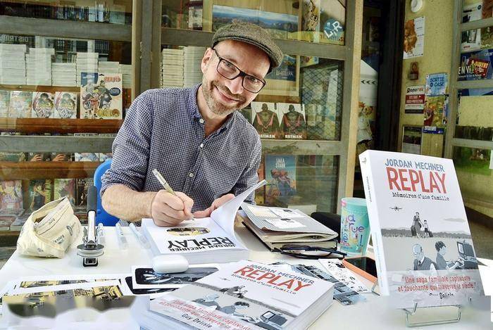 乔丹·麦齐纳在签售他的传记回忆录《Replay:Memoir of an Uprooted Family》