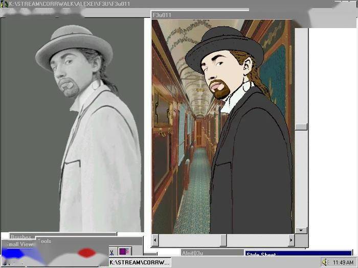 在《最后的快车》开发期间,麦齐纳和他的团队采用了转描动画技术——先拍摄演员表演的场景,然后再将其转变成手绘动画。麦齐纳知道,为了确保剧情能够对玩家产生足够的吸引力,他必须将这项技术发挥到极致。如今回头来看,与上世纪90年代FMV游戏大不一样的美术风格,恰恰是《最后的快车》的魅力不因时间推移而褪色的关键所在。