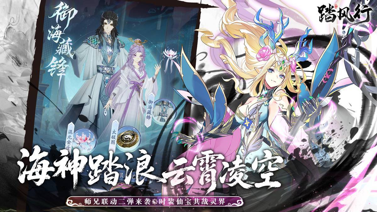 除了上述让人惊艳的版本亮点之外,《踏风行》还给大家准备了超多福利炸裂的惊喜活动,小编这里挑两个比较重要的说一说。首先自然是《师兄啊师兄》与《踏风行》的联动第二弹【御海藏锋】,李长寿和云霄仙子带着一大堆宝贝又回来了!6月16—23日,每日登录、参与仙宝抽取、购买造化礼包都能轻松入手仙宝抽奖券,白嫖党也能保底拿到攻防一体的联动仙宝【混元金斗】。这款新仙宝在降低对方暴击的同时可大幅增益自身,实战能力超强!而追求拉风外观的道友更是可以考虑下配套的联动限定时装【御海藏锋】和限定载具【太极图】,有了它们你就是灵界最靓的仔,修仙路上气场两米八!