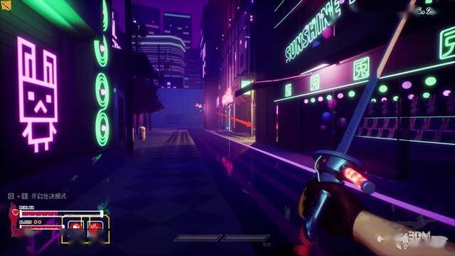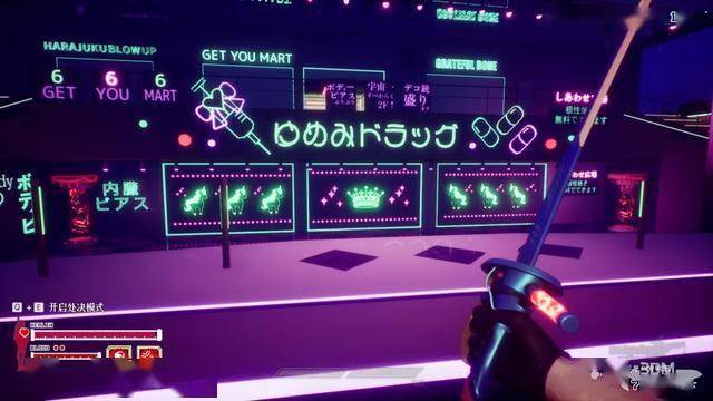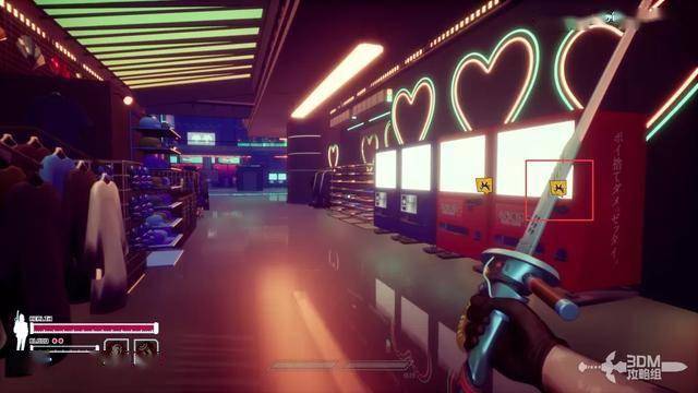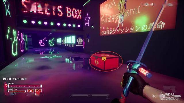 右侧的自动售货机会爆炸,建议不要用刀砍,往前走拿到副武器后,用手枪远程攻击,或者按住鼠标右键+F键,可以扔出武士刀。打碎售货机可以获得一些株札(货币)和血瓶;