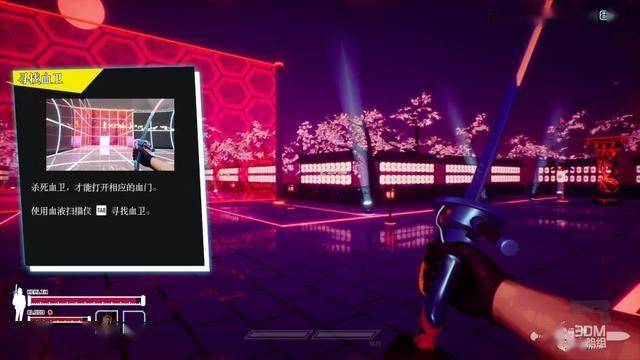 上楼后楼梯边有个手里剑发射器,爆头一发解决右边的两个敌人,攻击血卫解锁血门,进入下一个区域。