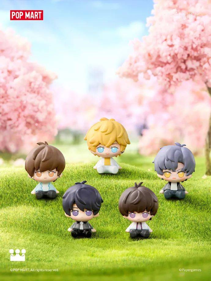 比如《恋与制作人》曾与泡泡玛特合作推出了约会系列手办盲盒,五位男主角每人两款造型,隐藏款则是五位男主角一起的摩天轮款,共计11款造型。