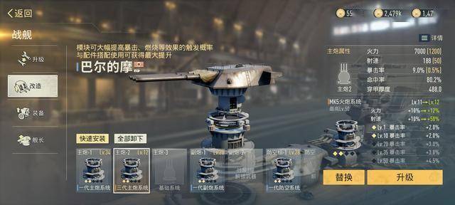 深度自由改装系统: 拒绝公式化养成!主炮射程精度、装甲类型厚度、引擎功率转向、防空炮效能、特种设备(雷达、声呐、火控)等核心参数均可自由调整。同一艘“俾斯麦”,可改装成远程炮击堡垒,亦可强化为近战防空刺猬——你的想象力与战术,决定战舰的最终形态!