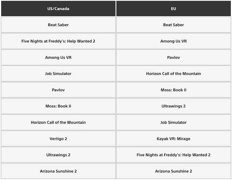 Playstation Store热门游戏下载排行榜每月发布,通过该榜单可以了解列出的VR游戏相对于其他游戏的销售情况。