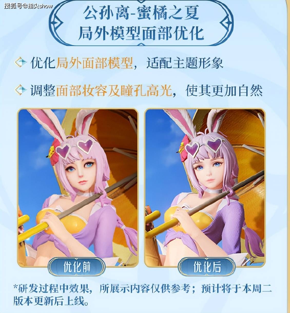 除了瑶,还有像公孙离的新海报,虽然迟了些,但也的确没扔下,往前翻还有大乔猫狗日记面部表情优化,青丘九尾双海报优化,高渐离建模及海报优化,公孙离蜜橘之夏面部优化等。
