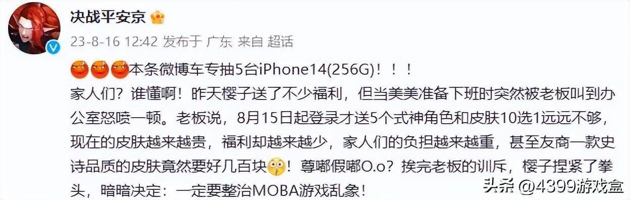 《逆水寒》手游成天在官博上“发疯”的经历不用过多介绍了吧?第一个跳出来宣称要整顿MOBA游戏乱象的《决战!平安京》还有印象吧?