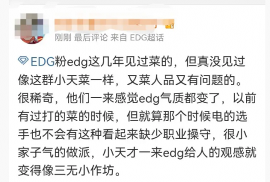 当下在EDG超话下面,许多网友留言要求换下Solokill上Ale。一些人则质疑起EDG当前首发选手的个人能力,乃至于对整个战队风气的影响。毕竟当下的EDG,正在面临建队以来的最大危机。